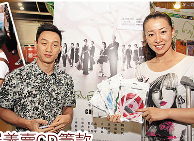 杨威及金晶22日亲自来香港出席首日书展,为“中国运动员教育基金”及“中国青少年发展基金”发行的唱片《风雨操场》作宣传及签名活动,吸引过百名读者排队索取签名,力压同场的艺人叶翠翠及陈志云的签名会。
