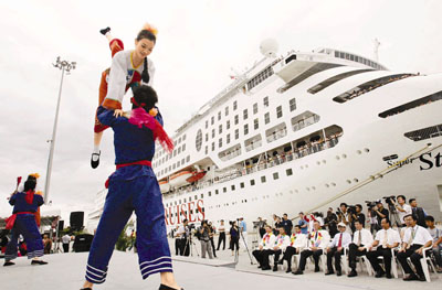 邮轮3日抵达台南安平商港后,旅客的岸上观光行程随即展开,约有300至400人选择参与观光团,分4条不同路线上岸游览。在台南著名古迹赤坎楼售卖小吃的摊档负责人称,乘坐邮轮的内地旅客比一般内地客消费力强,3日生意额明显上升,料可带动当地旅游收益。