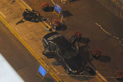 女事主看见又手枪又炸弹,吓得花容失色,幸男子聪明,利用手提电话暗中报警。警方接报大为紧张,调派大批警员赶抵包围,与贼人一度对峙,乘其不备打开车门将他制服。由于两个“土制炸弹”仍在车厢后座,警方将现场一段砵兰街封锁,并召军火专家到场,动用拆弹机械人引爆证实“诈弹”。