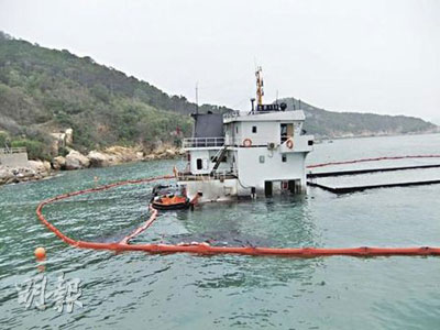 肇事内地货船长约30多米,上周五(1月29日)搁浅后不断入水下沉,3日剩下驾驶室及船弦在海面上,船四周被隔油网围着,中间仍见乌黑的油渍漂浮,两艘海事处油污处理组船只及小艇在附近清理油渍。