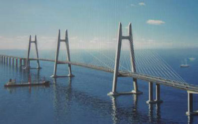 消息人士说,据最新出炉的大桥主体工程施工方案,将以“尽量减少对环保、通航影响,采用工厂化、大型化、装配化施工”为总体原则。其中,通航孔桥基础均采用2米以上大直径打入钢管桩,承台利用防撞钢套箱现浇施工;青州、九洲航道桥的钢塔采用大型浮吊节段吊装,主梁采用节段悬拼施工;江海直达船航道桥上部结构采取分幅整孔吊装施工。
