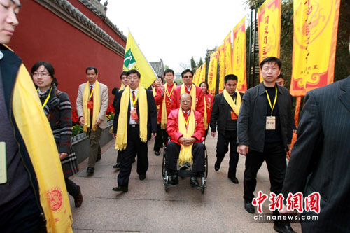 中新网郑州4月16日电 (记者 赵敏 何晓聪)16日,庚寅年黄帝故里拜祖大典在河南新郑黄帝故里举行,香港客属代表曾宪梓率团抵达祖根圣地,祭奠人文始祖轩辕黄帝。