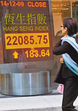 中新网12月15日电 据香港《文汇报》报道,阿布扎比政府突然出手向迪拜世界无条件注资100亿美元,令迪拜世界债项大减,出现金融危机的机会大为减小,刺激港股14日由跌转升,恒指由上午最多跌近360点,变成下午倒升最多逾320点,重上22000点水平。