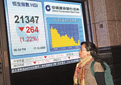 市场人士指,圣诞假期使投资情绪进入低潮,加上港汇下跌,显示资金正流出香港,料明年初前港股弱势难以扭转,恒指有机会再下穿21000点心理关口。