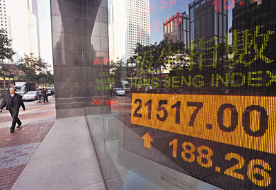 受到首次申领失业救济人数下跌及耐用品定单上升刺激,美国道指上周四半日市升53点,收报10520点,创14个月新高。中移动ADR较香港收市高0.08元或0.11%,汇控ADR报收相当于89.07港元,高0.53%。综合香港在美挂牌的8只ADR收市价,相当于港股升34.66点。
