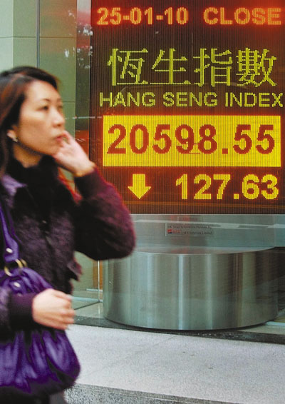 中新网1月26日电 据香港《文汇报》报道,美联储局主席伯南克连任有阻力,以及美总统奥巴马提出严厉监管大型银行规模的新方案,加上市场担心内银股再有“抽水潮”,拖累亚太股市25日普遍下跌,港股连跌4天,收报20598点,跌127点,成交大缩至638.6亿元。港股连续4天下跌,累计跌1079点。