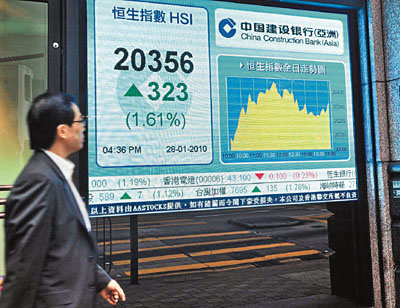 中新网1月29日电 据香港《文汇报》报道,联储局议息结果显示前景乐观,外围股市回稳,连跌6天的港股在期指结算日也借机反弹,恒指最多弹逾400点,全日收报20356点,升323点,升幅1.6%,扭转6天的跌势,但成交额却减至664.7亿元,反映买盘不活跃。