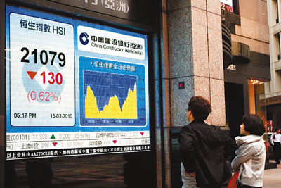 中新网3月16日电 据香港《文汇报》报道,内地通胀数据比预期高,市场忧虑中央会推出紧缩措施,上证跌1.2%失守3000点大关,报2976.9点,跌36.4点。A股疲软也影响到恒指表现,港股15日曾跌245点,跌穿21000点水平,午后港股跌幅收窄,恒指全日收报21079点,跌130.6点,继续窄幅上下的形态,成交额大减至500亿元。