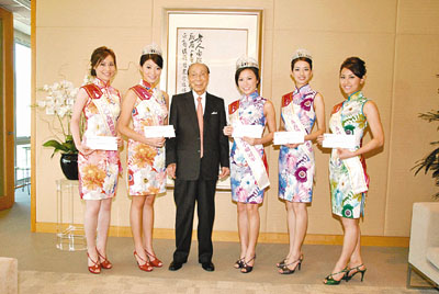 中新网8月28日电 据香港《文汇报》报道,三位刚出炉的香港小姐——冠军刘倩婷、亚军李姿敏和季军熊颖诗27日继续领奖行程,并与“最上镜小姐”袁嘉敏及“国际亲善小姐”黄嘉丽齐齐到珠宝行领取包括金钻后冠等总值逾250万港元的奖品,并由22年前的港姐杨宝玲为刘倩婷加冕。
