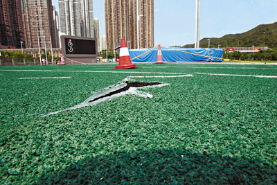 香港康文署总康乐事务经理周志文也指,康文署职员每天都会检查运动场情况,若再发现有地面不平情况,会尽早通报。