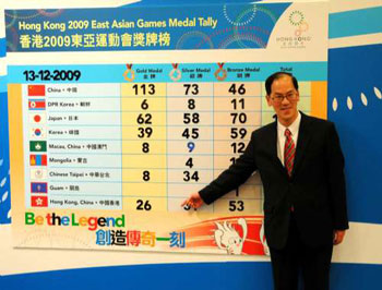 曾德成在总结东亚运时表示,东亚运的成功,除了运动员努力,也要多谢市民的支持。他说,东亚运达致传奇一刻的目标,包括香港在足球赛事夺得金牌,而奖牌以至金牌数目,都是空前佳绩。