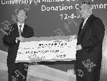 澳门社会知名人士何鸿燊、曹其真,以及吕志和基金有限公司、澳门霍英东基金会分别向澳大发展基金会捐款3000万澳门元,款项将作为基金会的永久性基金,由基金会管理,并仅作支持澳大发展之用。除前立法会主席曹其真亲自捐赠外,澳门博彩股份有限公司董事苏树辉代表何鸿燊,吕志和之子吕耀东代表吕志和基金有限公司,澳门霍英东基金会主席霍震寰代表该基金会向澳大捐赠有关款项。