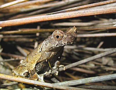 发掘学生组“十大热点”冠军的苏乐轩,现就读香港大学生态及生物多样性学系,他在一次生态夜行中,在龙虎山郊野公园发现爱“夜蒲”的短脚角蟾。他指出,短脚角蟾是香港原生物种,脸上有角,样子趣怪,多在夜间出没,雄性更会在每年夏春的繁殖期利用叫声吸引雌性,已被世界保育联盟评为濒危物种。