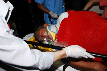 钟×胜被高尔夫球车压着,奄奄一息,其余各人除司机外也受伤,众人惊魂刚定后实时进行抢救,但4人未能移动车身,只好转向球场控制中心求助,职员接报赶往协助救援。钟×胜面色转白气弱游丝,称胸部好痛,大家担心他可能是内伤出血。