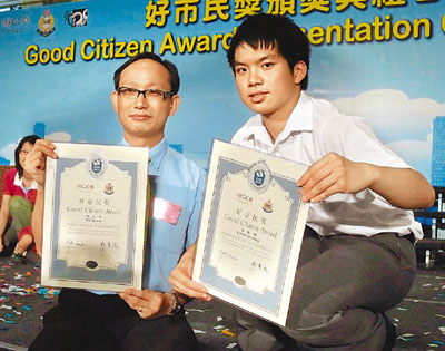 18日共有40名好市民得奖,15岁的容启聪为最年轻的得奖者。本年1月,他参加运动会时发现一名可疑男子把一些手袋放到运动场外的私家车上,怀疑他偷去同学的财物,于是立即通知老师胡文安,并与胡一起追截该男子。该男子其后驾车逃去,他们立即记下其车牌号码及报案。