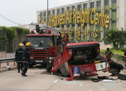 中新网6月22日电 据香港《大公报》报道,香港九龙城21日上午发生出租车翻车意外,肇事司机驶至宋王台时,报称闪避流浪狗而失控撞向路旁石壆,反弹出路面时四轮朝天。