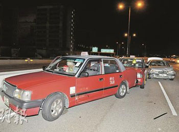 中新网7月14日电 据香港《明报》报道,香港观塘绕道13日上演非法赛车狂徒罔顾人命冲击路障引发连环车祸事件,一辆警方冲锋车在观塘绕道截停5辆“平民”车辆组成路障,被约20辆高速驶至的跑车疯狂冲撞,引致8车相撞、6人受伤。