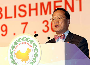 曾荫权30日傍晚在香港会议展览中心出席中国和平统一促进会香港总会成立庆典时表示,在过去数年,乐见两岸关系提升、“三通”落实,两岸四地的交流也得以加强。他说,香港已采取主动,落实措施,包括在台北成立香港贸易发展局办事处、举办港台城巿交流论坛等,并与台方达成原则上协议,设立双边的商贸合作委员会。他指出,期望香港所作的努力,有助国家统一。