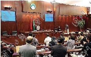 随后曹其真站起来鞠躬致意,全场所有人均实时起立鼓掌,持续不断的掌声表达了议员、工作人员对这位主席的尊敬,之后曹其真还与议员及工作人员逐一握手,依依之情溢于言表。
