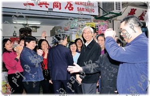 崔世安巡区,传媒蜂拥而至,所到之处无不吸引居民围观。不少居民隔住人群高喊自己的诉求,希望崔世安解决就业问题,继续“派钱”解困。不少商铺做足准备,崔世安与负责人、职员互相拜年问好,不时询问经营情况。在探访关闸一药房时,还特别询问药剂师在什么地方毕业,药房生意好吗?