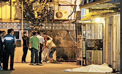 昨日清晨5时有村民行经现场地下时,发现两事主并排倒在地上、头爆肢折,于是立即报警,并且通知蛇仔父母和家人。警方及救护员接报到场,证实两人已死亡。警方发现两人手腕都有刀伤,加上村民指肥仔不知去向,警方大为紧张,一度担心事件有可疑,将案交由元朗警区重案组跟进。
