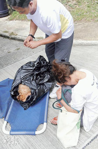 无奈两夫妇终究要面对残酷的现实。下午2时许,水务署人员报称在水塘发现一具“金色动物尸体”,夫妇心情随即直插谷底,梁太更哭成泪人。在水务署人员指引下,爱护动物协会人员抵达接收尸体,目睹被装进黑色胶袋、为救自己而死的爱犬,梁太声泪俱下,要求协会人员剪下一撮金毛让她日后凭吊。