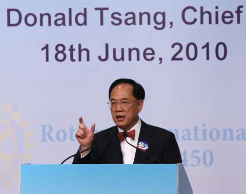 中新网6月19日电 据香港《文汇报》报道,香港政改方案最快4日后在立法会表决。行政长官曾荫权重申,政改方案目前仍欠数票才能通过,他会尽力争取议员支持,直至最后一分一秒。他说,普选不会忽然“从天而降”,议员否决方案会令政制原地踏步及社会继续内耗,通过方案则政制可向前发展及建立互信,一切取决于议员的“一念之间”。