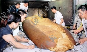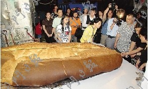 中新网5月22日电 《澳门日报》今日在头条刊发报道称,由澳门金马轮咖啡饼店焗制的巨型猪扒包于21日举行的“爱在澳门——第二届世纪婚礼两岸四地2009”活动开幕仪式中亮相,将申请成为吉尼斯世界纪录大全中的全球最大的猪扒包。21日不少与会者均对巨型猪扒包十分感兴趣,纷纷与包合照,场面热闹。