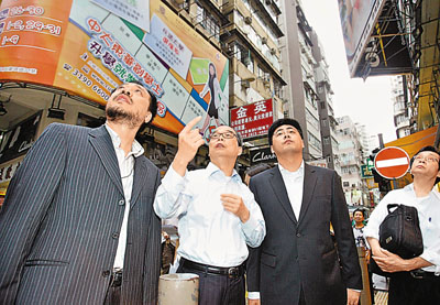 六月九日,腐蚀性液体伤人事件发生后,香港警方继续对旺角奶路臣街与西洋菜南街交界处的几栋嫌疑楼房进行布控,进一步排查疑点,大批香港媒体亦在现场跟踪报道。 中新社发 郑祚声 摄