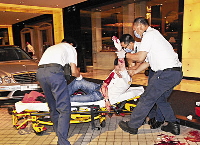 “泰龙”当场身中逾7刀倒卧血泊中,杀手逞凶后跳上2车倒车逃去。同行友人惊魂刚定报警求救。救护员赶至将满身鲜血已半昏迷的“泰龙”送往伊利沙伯医院抢救,惜延至清晨5时57分不治。