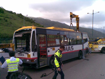 事发在凌晨4时许,车辆当时载有20多名下班员工,出九龙时在小蚝湾附近失控撞栏,全车翻侧,3人压在车底。消防员由车头进入车厢救人,伤者分别送往玛嘉烈及仁济医院。