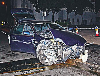 私家车突围逃出后,至安全街时警车追至,私家车倒车连撞警车三次,在安全街加速疾驰,但失控撞毁路边三个石栏继而反弹路中,车头尽毁无法开动。