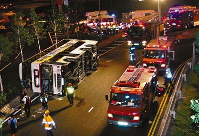 约今晨零时20分,肇事巴士载着数十名趁假日往港岛游玩的市民,返回将军澳区住所。消息称,巴士从中环开出时差不多满载乘客,途中虽有部分乘客已下车,但车祸发生时车内仍有逾30人。