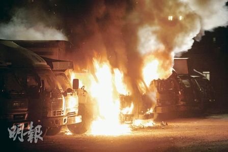 事发昨凌晨近4时,5辆货车车头冒出熊熊火光,更多次传出爆炸巨响。消防员射水半小时后将火救熄,但发现两处火头,火势亦迅速扩散,认为起火原因有可疑。案件现交由九龙城刑事调查队第8队跟进,警方正联络各车主调查。