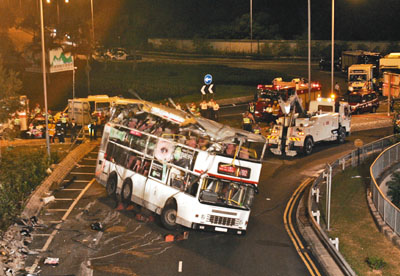 中新网11月10日电 据香港《文汇报》报道,香港将军澳9日凌晨发生巴士翻侧严重车祸,酿成1死35伤惨剧,警方及运输署正调查肇事原因,不排除由超速引致。有乘客忆述,事发时巴士车速极快,怀疑司机转弯时没有收掣。
