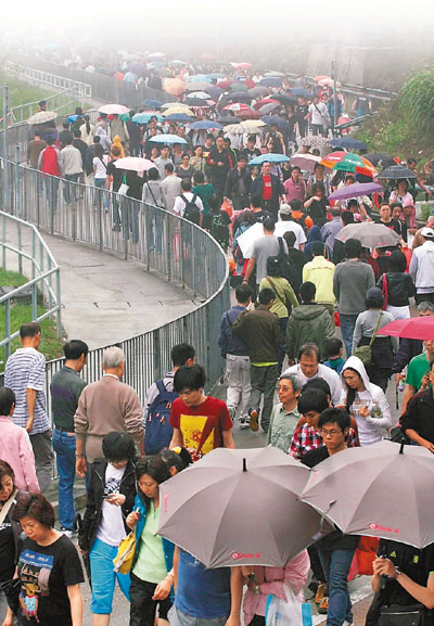 清明时节雨纷纷,香港昨日不时下着毛毛细雨,但无阻市民祭祖决心。其中以“长命斜”闻名的将军澳华人永远坟场,整日人流络绎不绝,但由于浓雾笼罩令天气闷焗,即使时有微风,市民拿着大包细包徒步上山亦大汗淋漓,部分人则早有准备出动手拉车,或把婴儿车变成“小货车”,把较重的祭品拉上山。有市民为避免走路上山,宁愿早起在凌晨5时半警方未封路前,摸黑驾车或乘坐的士上山拜祭。