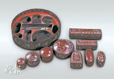 棺椁内放置精美漆器和纺织品等陪葬品,经悉心编置,反映汉代贵族生活奢华。林国辉指出,展品包括黄褐色菱纹罗地“信期绣”香囊及朱色菱纹罗手套,表现出当时精致的刺绣技术。