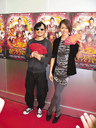 刘镇伟、郑中基和梁咏琪13日出席电影记者会,记者发现原本在海报上有份亮相的阿娇和吴君如都被换走,改由蔡少芬顶上,由于君如在戏中只是一闪即逝,不及阿娇戏份多,因此令人怀疑换走阿娇肖像,是怕内地继续封杀阿娇。