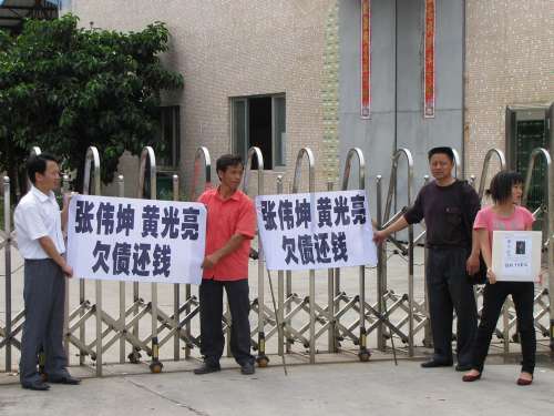 据了解,黄光亮投资的木业厂早在1993年开业,2007年从深圳观澜迁入东莞黄江。据工厂员工透露,工厂于本月14日停工,当时接到的厂方通知是休息三天,而员工再返厂时,厂内所有产品包括机器被偷偷运走。现时,该厂员工4月份及5月份的工资仍未发放,不少跟随多年的老员工担心一旦老板走佬后,他们的工资和劳动赔偿如何追讨。