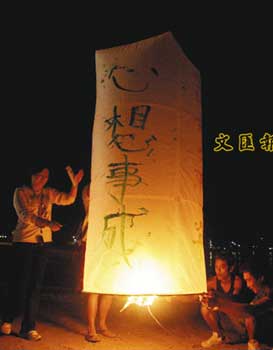 中新网3月26日电 据香港媒体报道,香港一连十天的梅窝洪圣诞节于本周六揭幕,大会昨(26日)晚特别试放八盏孔明灯,筹委会将安排共二千盏孔明灯供市民在会期内点放,至今已有近六百个认购,最高价一盏较认购价高三百倍。