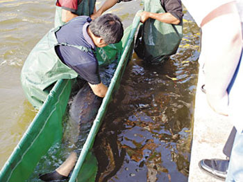 两尾中华鲟健康状态均一切正常。(图片来源:文汇报)