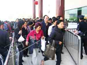 经拱北来澳的旅客高峰人流从昨日上午八时半已形成,未到九时,拱北口岸出境大厅已挤满排队轮候过关来澳的旅客,部分人龙尾段延伸到室外的口岸广场,以致有人以为口岸计算机系统出现故障,见大厅大门内外人如潮涌和排队龙尾太长而放弃排队。