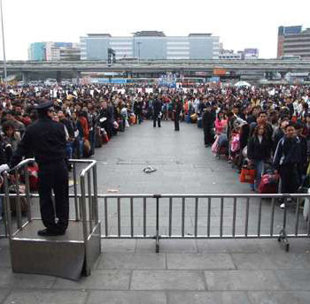 今年春运较去年提前,特别是内地施行新休假制度后,“五一”取消长假,赴港游客流提前涌现在春运期间。广东省公安出入境部门人士预计,2008年春节前夕及期间经深圳赴港个人游及团队旅客,可望同比去年增长20%倒30%,而北上的香港人同比也将有10%多的增长。因此,今年春运期间,港澳出入境流连同旅游探亲流、放假学生流、节日商务流及外来务工流汇合,凸现客流高度、高峰、时段“三大集中”,广深、广九线疏运难度加大。
