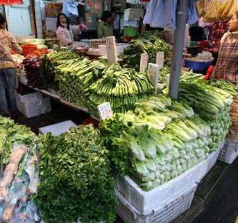 一月二十九日,受内地多省大风雪影响,供港蔬菜供应量减少两成,批发价平均升三成,其中菜心价格,由每斤十元加到十八元;有菜档负责人指,生菜及菜心来货少了四成,不得不涨价。 中新社发 陈伊敏 摄