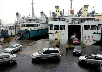 图:海口各港口往返琼州海峡有数十艘客船接载客运。(图片来源:大公报)