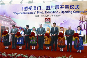 图片展30日上午9时半在天津博物馆开幕,澳门社会文化司司长崔世安,中联办经济部长周志奎,旅游局长安栋梁,天津市旅游局副局长金铁林、佟景正等主持开幕仪式。图片展为期1周,展出20多幅充满澳门特色的图片。