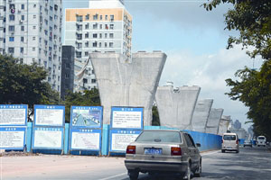 图:兴建中的广珠轻轨珠海终点站定于拱北。(图片来源:澳门日报)