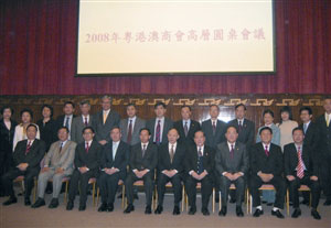 “2008年粤港澳商会高层圆桌会议”由香港中华总商会副会长林铭森主持。在会议上发言的还有:香港中华总商会会长霍震寰、广东省总商会会长陈丹、香港工业总会主席陈镇仁等。