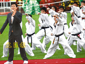 中新网5月5日电 据香港文汇报报道,香港各界青少年迎奥运系列活动委员会4日在香港大球场举行“心系奥运.中华青年大联欢”,刘德华、金培达、李克勤、方力申等香港艺人及内地歌手周笔畅、王宏伟参与演出,阵容相当庞大。