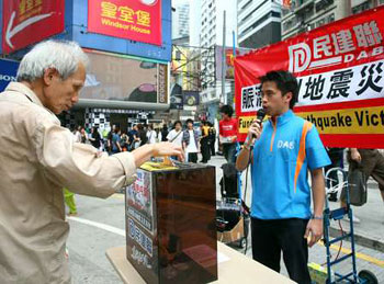 多个政党、团体和商业机构均以不同方式参与赈灾行动,包括街头和商场义卖、献唱、大球场义赛等,市民纷纷慷慨解囊,祈求为灾民献出一分力。